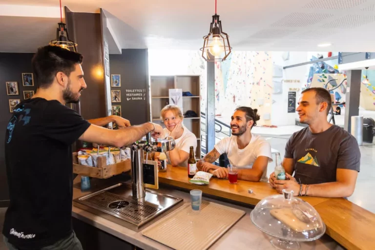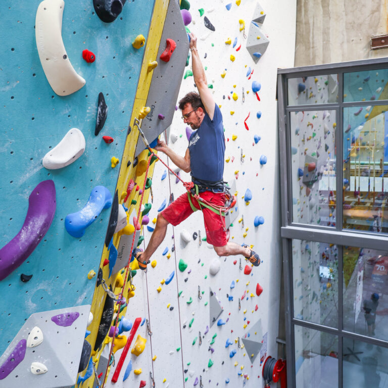 Prenez de la hauteur, vous pourrez grimper sur 160 voies jusqu’à 16 mètres de haut sécurisé par une corde.